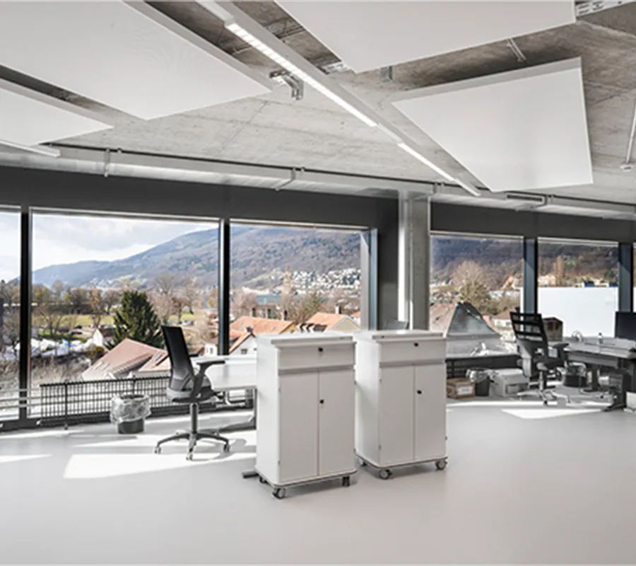 We rent offices, coworking spaces and clean rooms (class 6) in a prime location just behind Biel/Bienne’s main train station. If you’re a start–up, an innovative SME or a national or international research team, we offer the following amenities:
